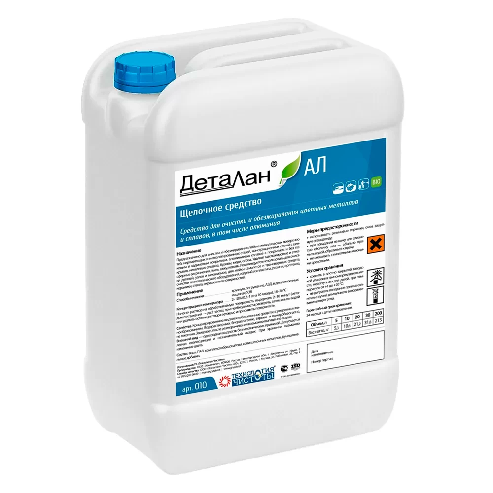 - для очистки и обезжиривания цветных металлов и сплавов, алюминия (щелочное средство).