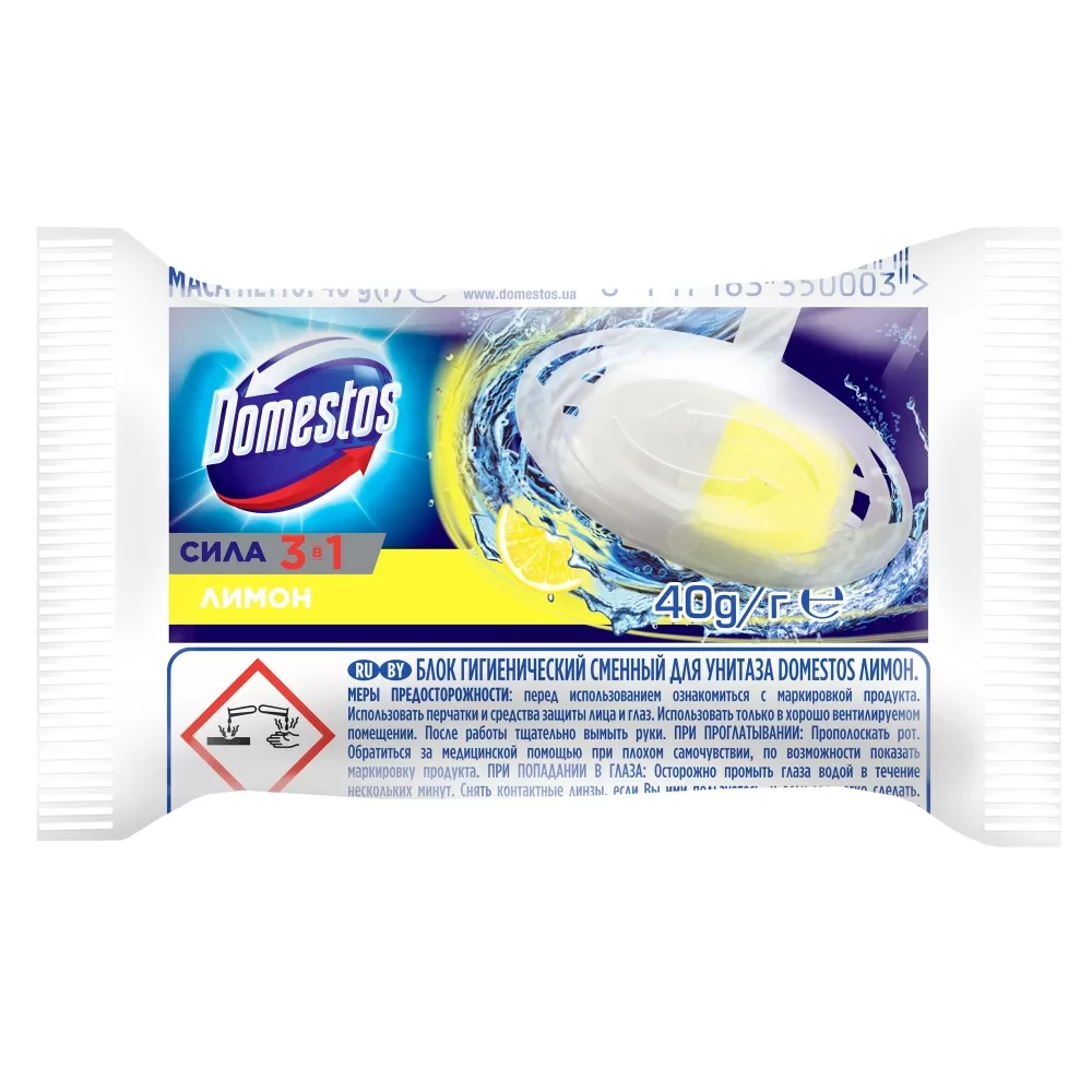 - Domestos Сменный блок для очищения унитаза "Лимон" три действия, которые объединились в одном эффективном средстве для поддержания чистоты, блеска и приятного аромата в вашем туалете.