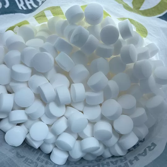 - Соль таблетированная представляет собой спрессованную в таблетки пищевую выварочную соль (NaCl) сорта экстра, изготовленную по ГОСТ Р 51574-2018 без добавления йода и антислеживающей добавки.