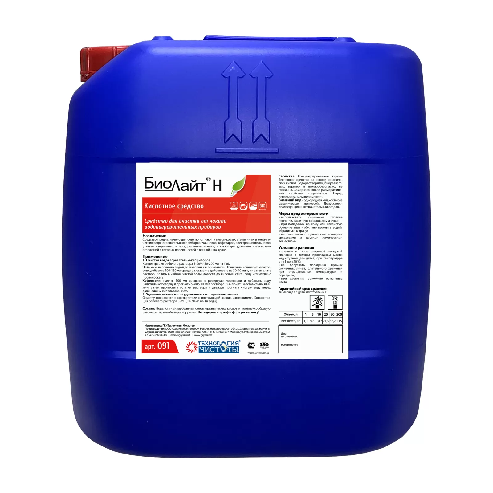 - Концентрированное жидкое беспенное средство на основе органических кислот.