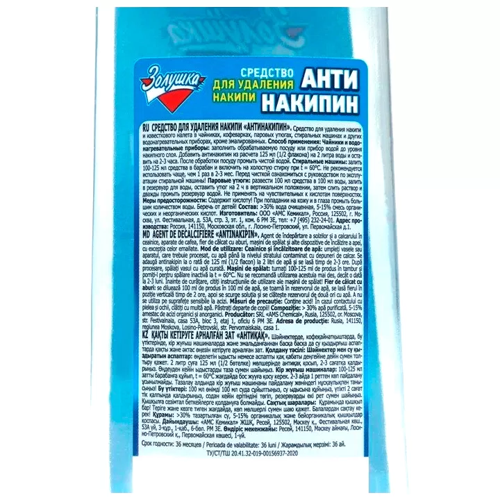 - Добавить Антинакипин из расчета 125 мл (1/2 флакона) на 2 л воды и оставить на 2-3 часа. После обработки посуду промыть чистой водой.