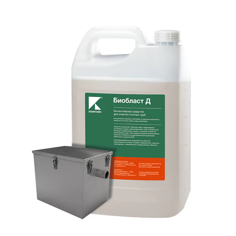 - Биологические средства серии БИОБЛАСТ разрушают структуру жира, предотвращая постоянные засоры жироуловителей и труб. Специальные бактерии вырабатывают энзимы, с высокой скоростью разлагающие жиры.