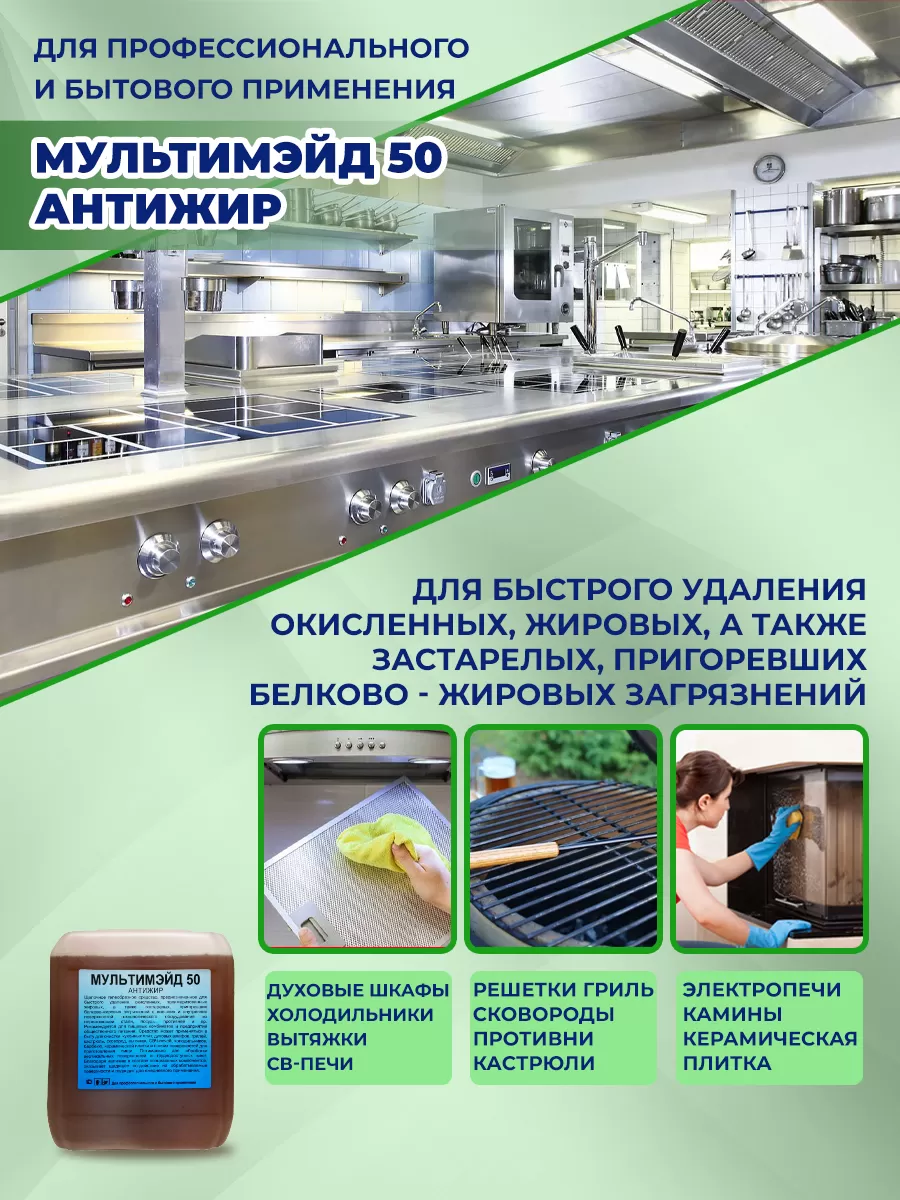Готовое к применению щелочное средство, предназначенное для быстрого удаления окисленных, полимеризированных жировых, а так же застарелых, пригоревших белково-жировых загрязнений с внешних и внутренних поверхностей технологического оборудования из нержавеющей стали, а так же с полов и стен только из щелочноустойчивых материалов.