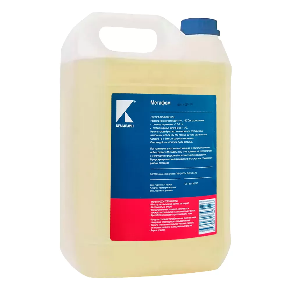 - Возможно многократное использование рабочих растворов в рециркуляционных мойках: 1 л концентрата МЕТАФОМ® при температуре рабочего раствора +40 °С растворяет более 0,5 кг масляных загрязнений.