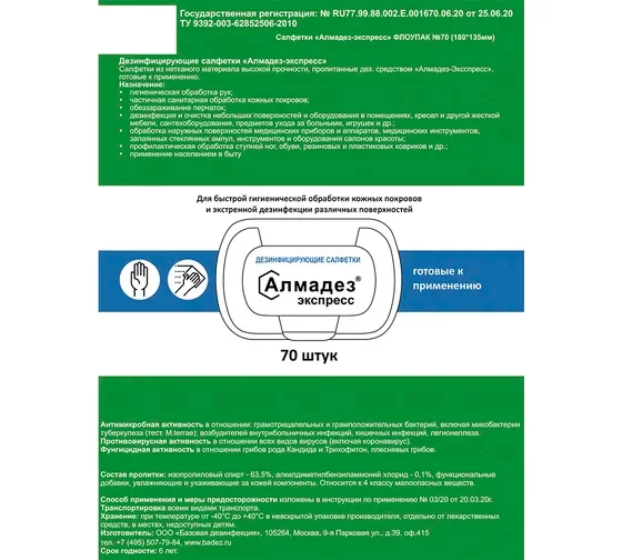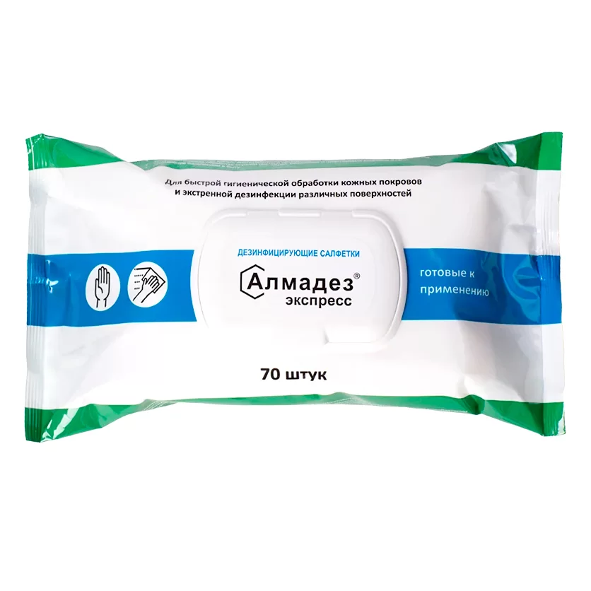 - Салфетки АЛМАДЕЗ Экспресс равномерно пропитаны дезинфицирующим средством "Алмадез Экспресс".