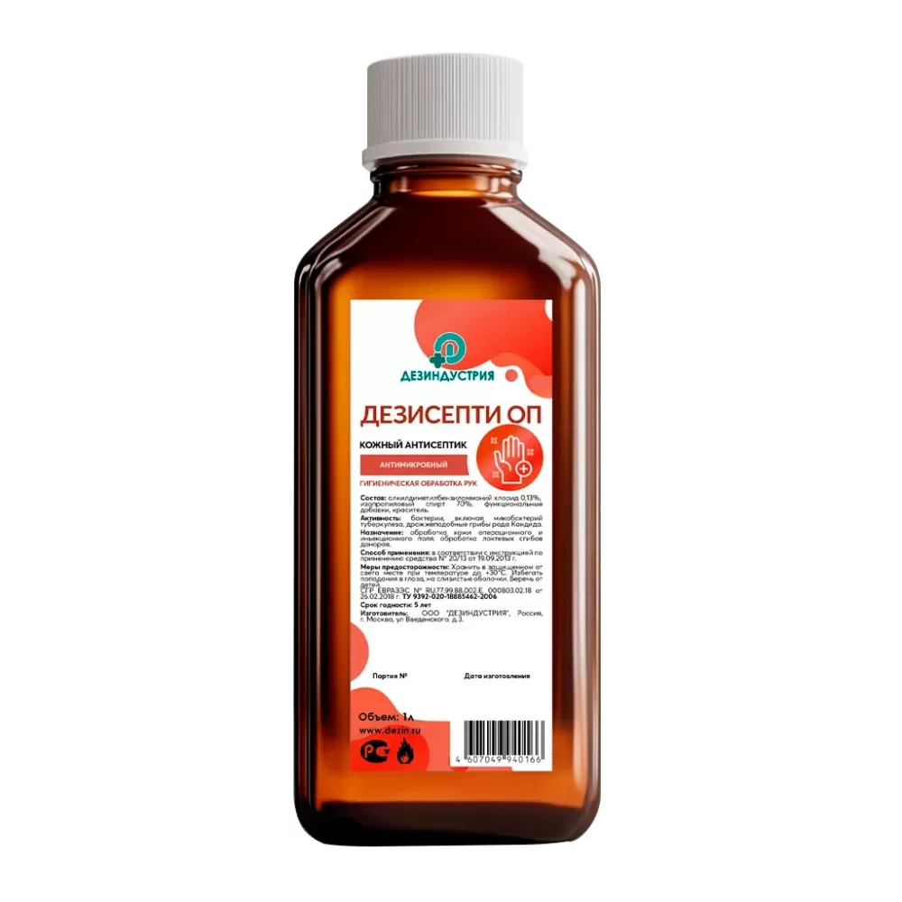 - содержит спирт изопропиловый (70 %) и алкилдиметилбензиламмоний хлорид (0,13 %), а также функциональные добавки (краситель и воду).