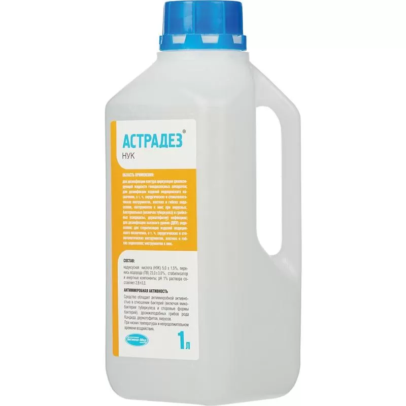 - 5,5±2,0% надуксусной кислоты (НУК) и 26,0±6,0% перекиси водорода (ПВ),
