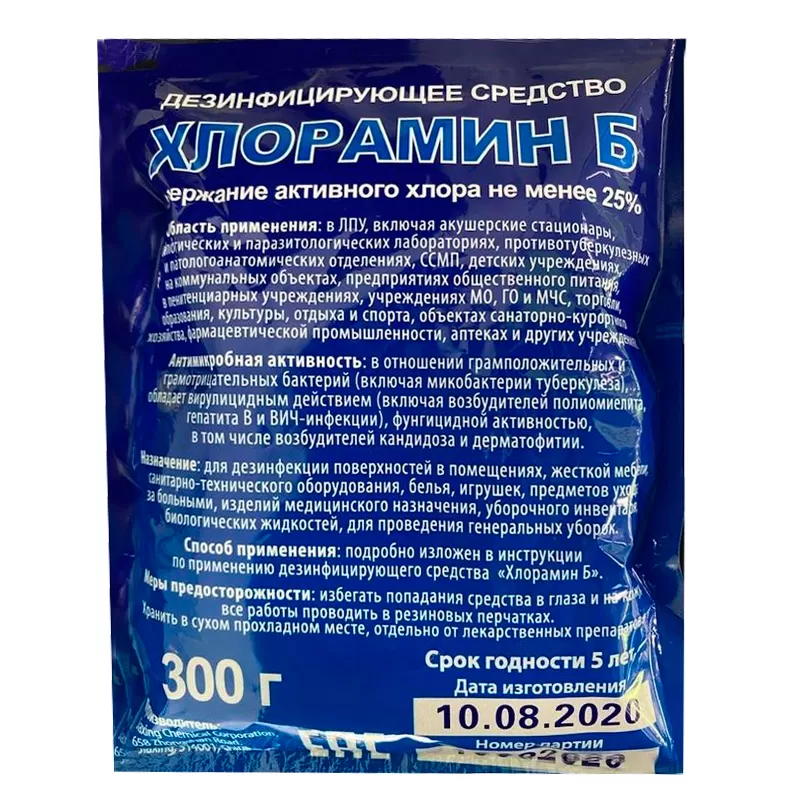 - Состав: Бензолсульфохлорамид натрия. Содержание активного хлора в средстве составляет не менее 25,0% (по объему).