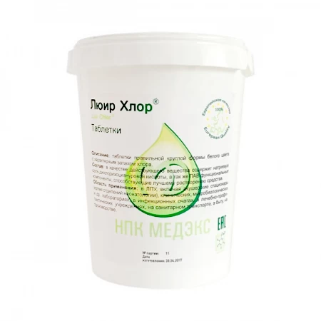 - Форма выпуска хлорного средства: Таблетки
