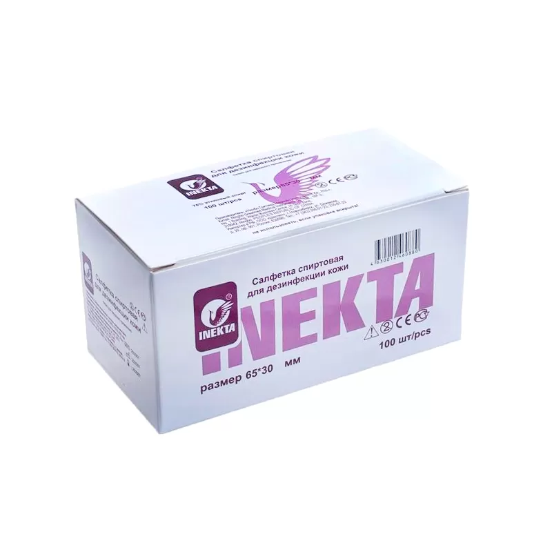 - Салфетка инъекционная спиртовая одноразовая Inekta, изготовлена из нетканого материала.