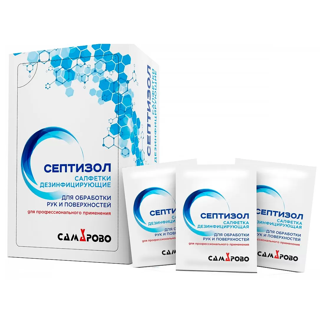 - герметично сваренный пакет из многослойного комбинированного материала (бумага мелованная, фольга, полиэтилен, сурлин) - 100 штук в упаковке, размер салфеток - 170х140 мм и 60х70 мм.