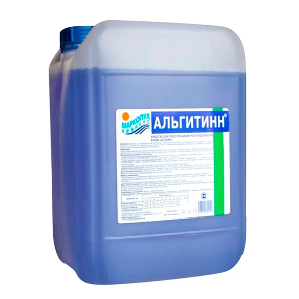 - Препарат от Маркопул Кемиклс "Альгитинн" - альгицид, обладающий долгосрочным действием, эффективно ликвидирует споры бурого планктона, мешает развитию процесса обмена веществ у водорослей, что приводит к их гибели и предотвращает появление в дальнейшем. Препарат рН - нейтрален, не содержит хлора и тяжелых металлов, имеет пониженное пенообразование. Рабочий раствор препарата (на 100 мл Альгитинна - 600 мл воды) может применяться для антигрибковой обработки пластиковых и резиновых дорожек, настилов, кафельных кромок. Требуется технический перерыв в работе бассейна не менее 12 часов.