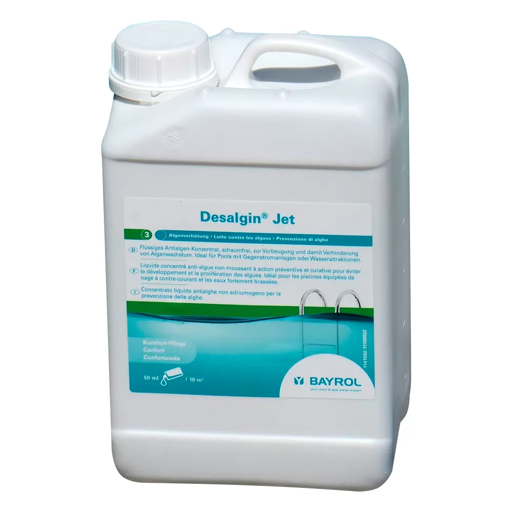 - дезальгин Джет (Desalgine Jet) - слабопенное средство, препятствующее образованию водорослей с эффектом просветления воды