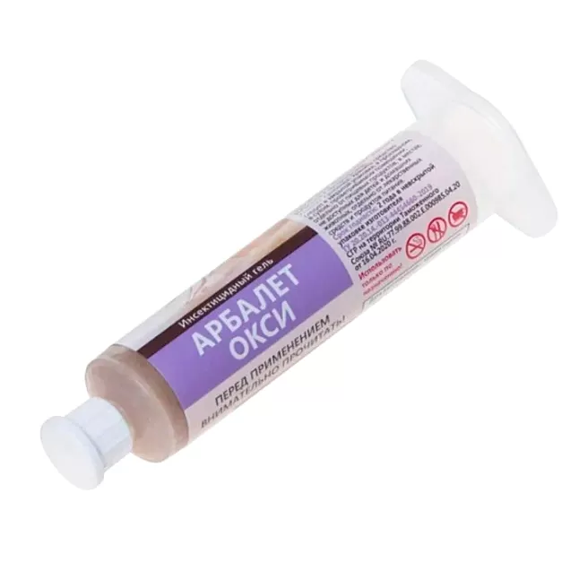 - Средство инсектицидное средство ”АРБАЛЕТ ОКСИ“ представляет собой пищевую приманку в виде геля (пасты) густой консистенции от прозрачного до светло-желтого цвета.