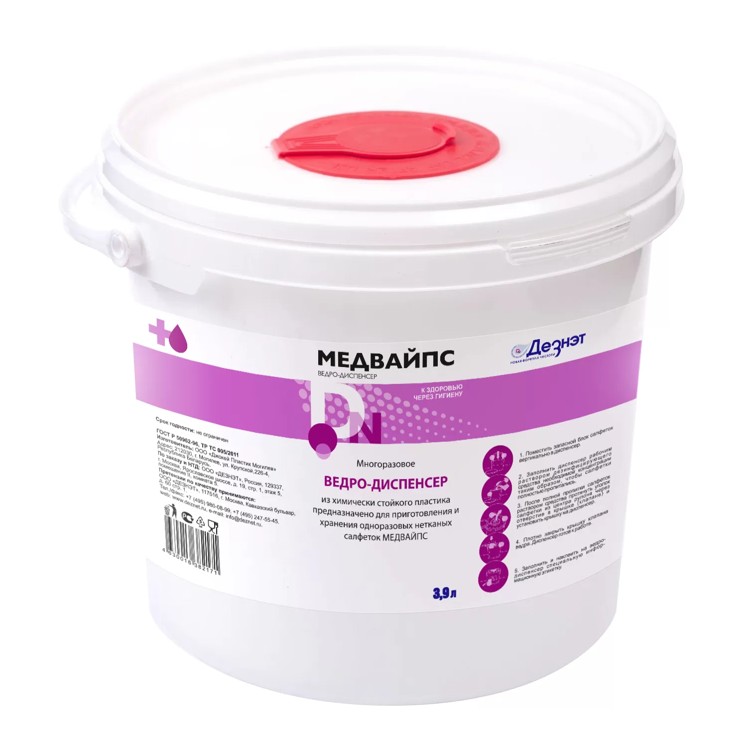 - Заполните и наклейте на ведро-диспенсер специальную информационную этикетку.