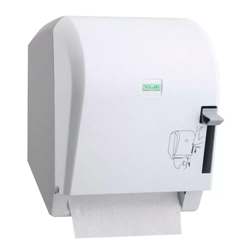 - Диспенсер рулонных полотенец крепится к стене и имеет удобный размер.