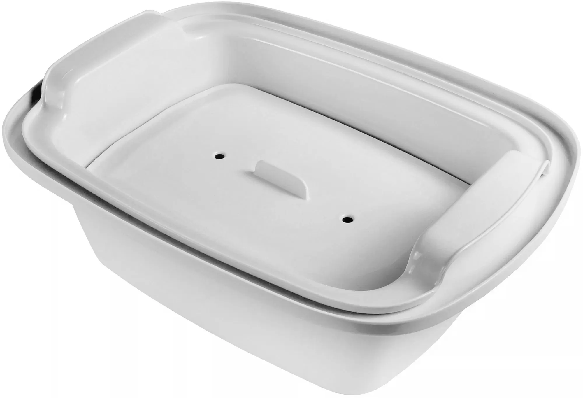 - Контейнер представляет собой ванну с крышкой, внутри которой расположен перфорированный поддон. Для полного погружения легковсплываемых изделий контейнер комплектуется утопителем.