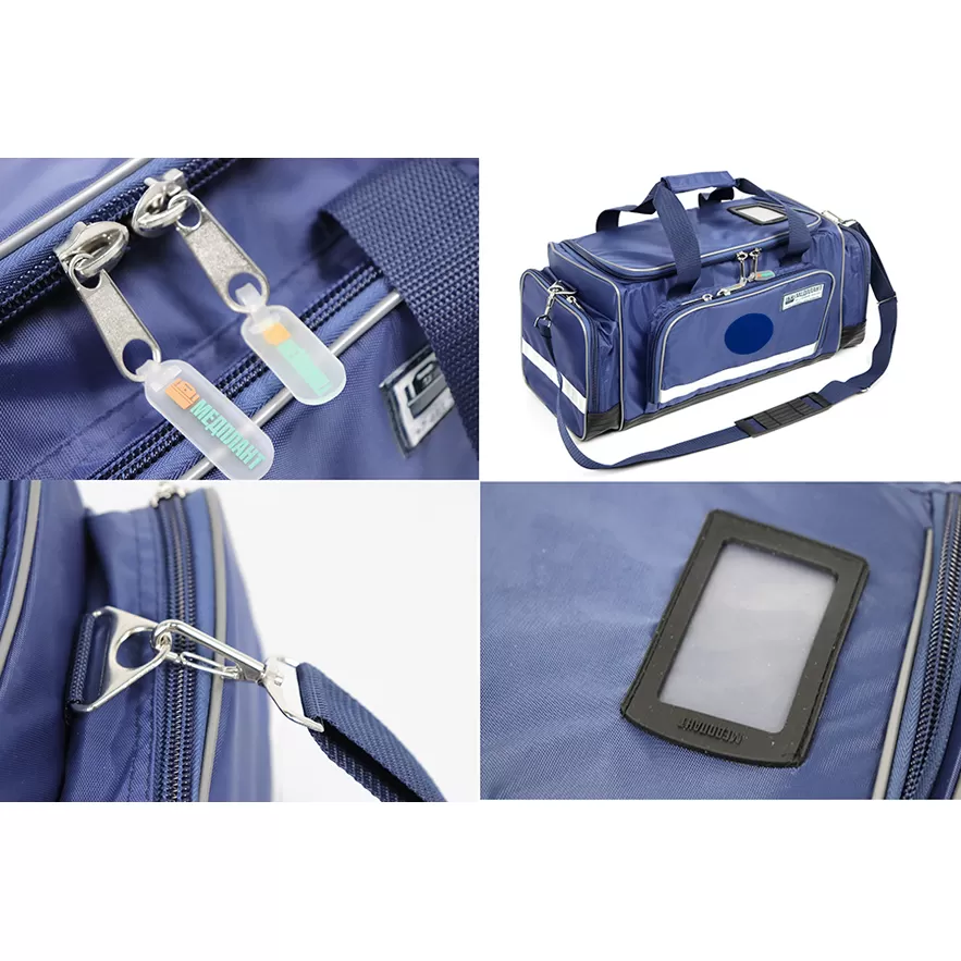 Для переноса сумки имеются укрепленные ручки и удобный плечевой ремень. Нагрузка в положении «на плече» распределяется благодаря плечевой накладке. Внешние карманы для удобства имеют возможность максимального раскрытия, а внутренние карманы позволяют разместить медицинское и личное оборудование в необходимом порядке. На внутренних сторонах боковых стенок сумки имеются резинки петли для крепления инструмента.