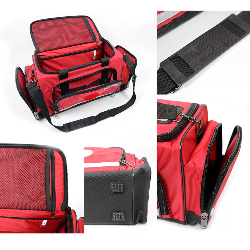 Для переноса сумки имеются укрепленные ручки и удобный плечевой ремень. Нагрузка в положении «на плече» распределяется благодаря плечевой накладке. Внешние карманы для удобства имеют возможность максимального раскрытия, а внутренние карманы позволяют разместить медицинское и личное оборудование в необходимом порядке. На внутренних сторонах боковых стенок сумки имеются резинки петли для крепления инструмента.