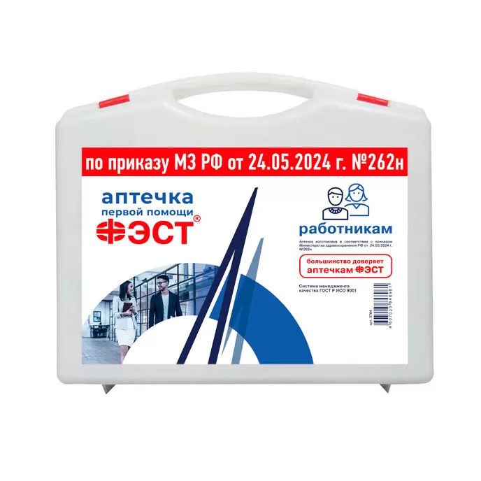- Аптечка изготовлена в соответствии с приказом Министерства здравоохранения РФ от 24.05.2024 г. №262н.