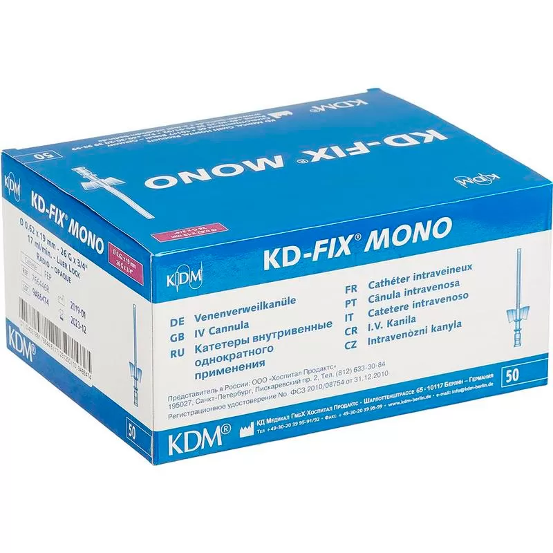 - Катетер периферический KDM с дополнительным портом G26 для длительных внутривенных вливаний.