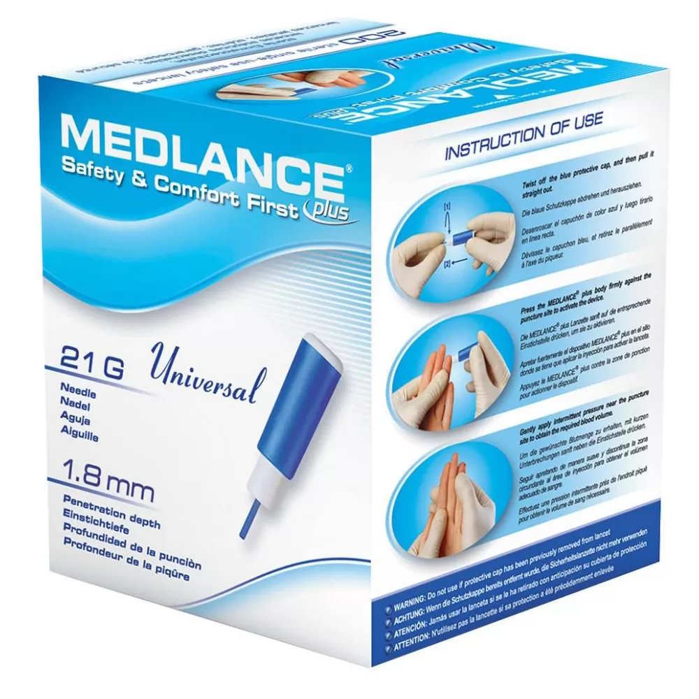 - Медланс Плюс Универсал - идеален в тех случаях, когда вам необходим большой образец крови для измерения уровня глюкозы, гемоглобина, холестерина, а также для определения группы крови, коагуляции, газов крови и много другого.