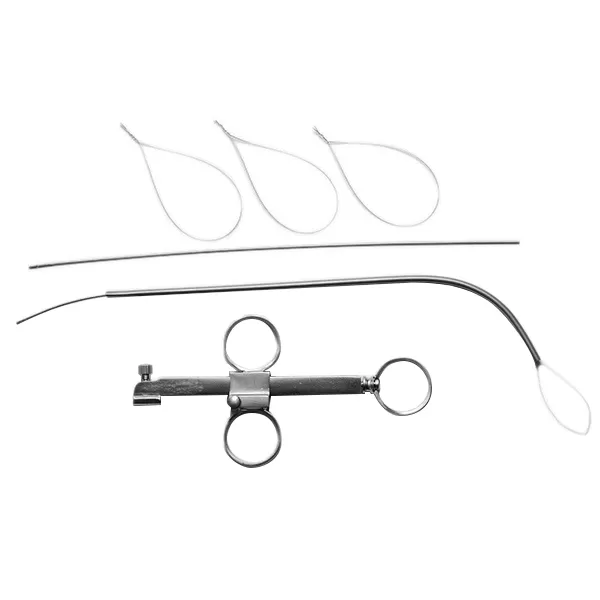 Инструмент для удаления миндалин и полипов в гортани путем захватывания и срезания проволочной петлей.