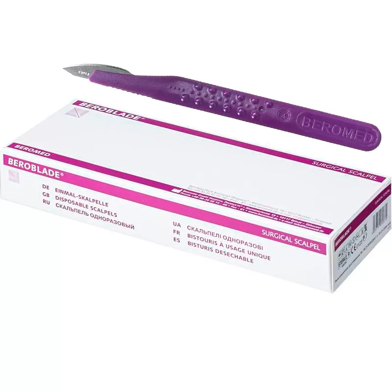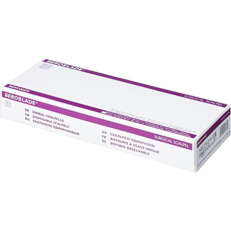 Скальпель хирургический одноразовый Beroblade предназначен для разъединения тканей при всех видах хирургических вмешательств. Лезвие для скальпелей изготовлены из высокоуглеродной стали, идеально ровная режущая кромка обеспечивает совершенную линию и ровные края разреза. Высокая острота заточки лезвия. Технология заточки и полировки режущего края обеспечивает длительное сохранение высоких режущих свойств. Форма скальпельных лезвий точно соответствует международным стандартам. Ручка изготовлена из пластика медицинского назначения, ручка имеет эргономичную форму, оснащена линейкой. Лезвие скальпеля имеет прозрачный жесткий защитный чехол. Скальпель упакован в индивидуальную блистерную упаковку. Стерилизовано радиационным способом. В упаковке — 10 штук. Срок годности: 5 лет.