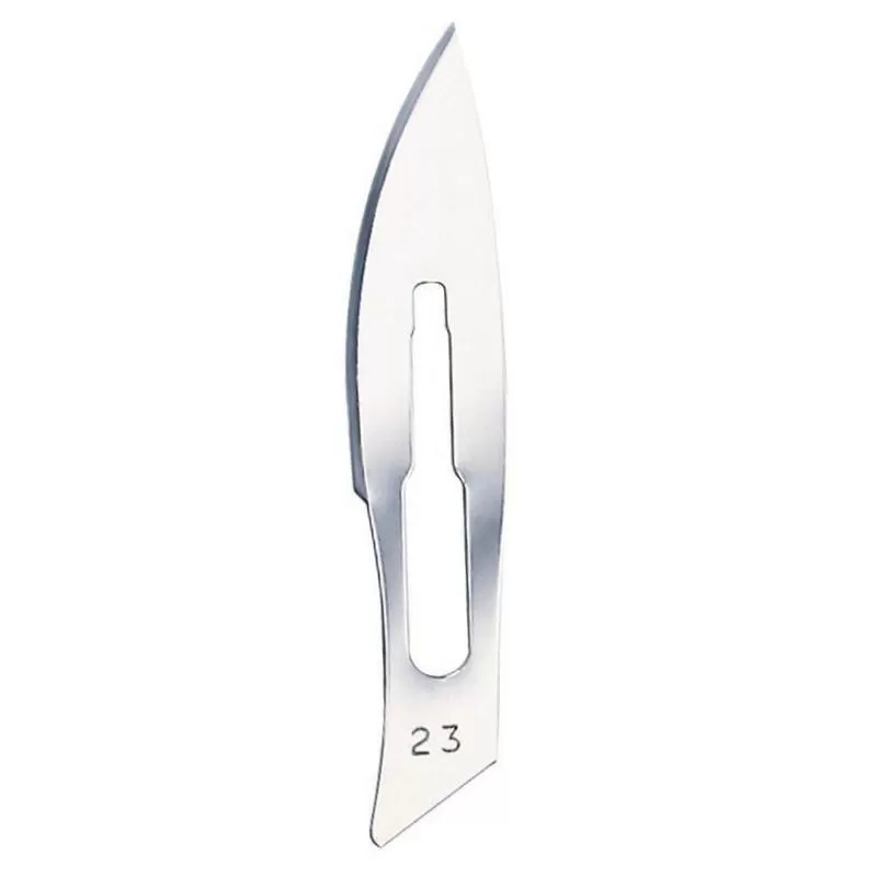 Лезвие для скальпеля CERTUS № 23. Материал: нержавеющая сталь. В упаковке 100 шт.