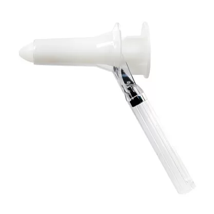 - Закругленный проксимальный наконечник (внутренняя часть зеркала) изготовлен из белого пластика и применяется как проводник - для ввода зеркала пациенту, устраняет дискомфорт при введении.