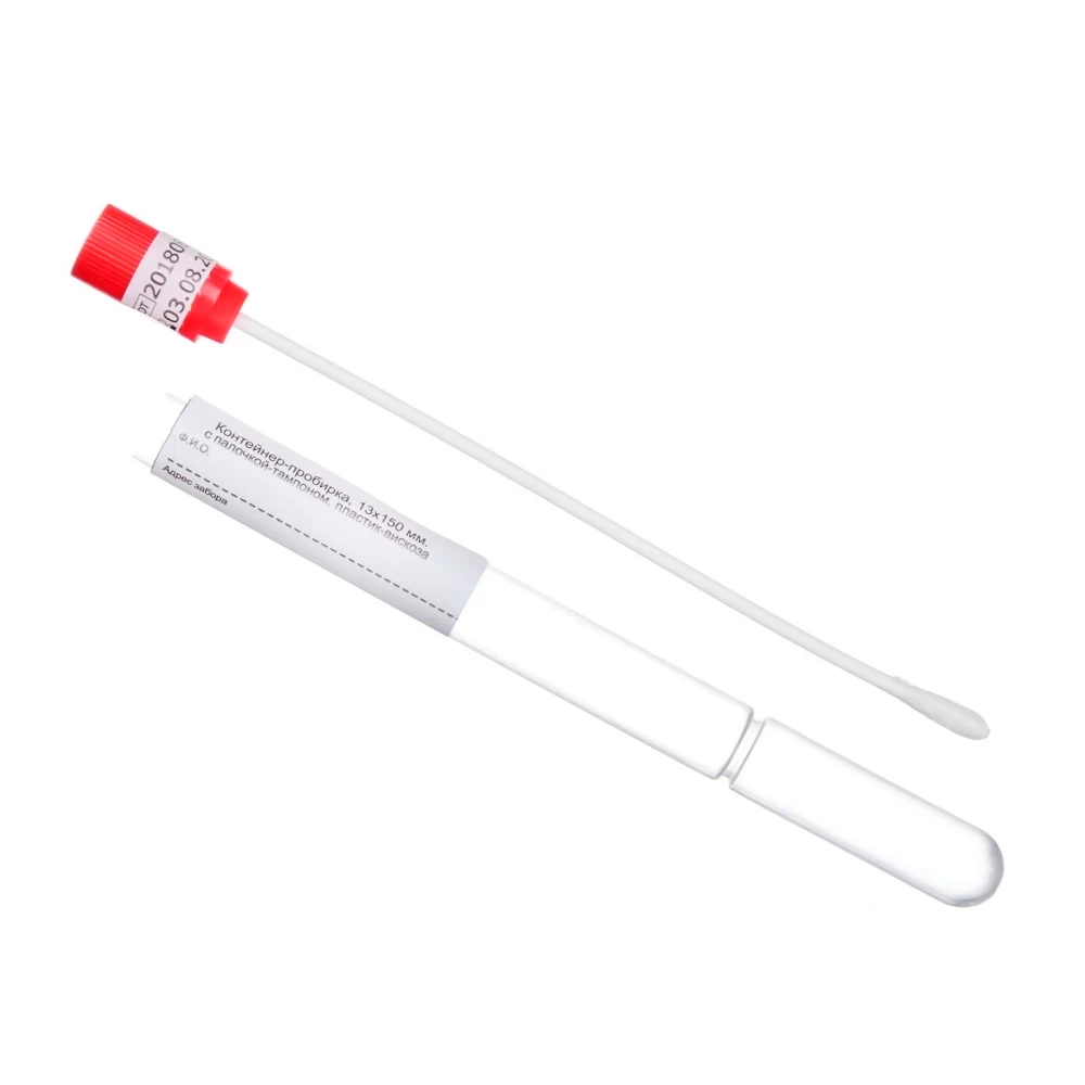 - Есть внутреннее сужение пробирки до 10 мм в нижней части, которое визуально определяет место расположение тампона, увеличивает прочность пробирки в месте хранения тампона, снижает контаминацию бактерий и вирусов в верхнюю часть пробирки и рабочую зону палочки-тампона.Время сохранения материалов для анализов до 4 часов.