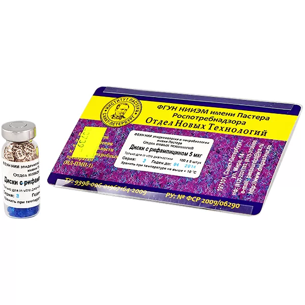- Диски с рифампицином (бенемицин, римактан, рифадин, рифамор, тубоцин) 5 мкг.