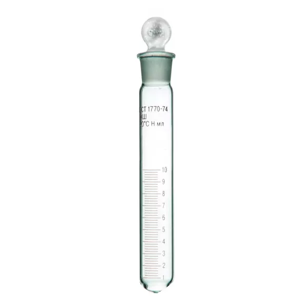 - Мерная стеклянная пробирка с градуировкой, шлифом и притертой пробкой.