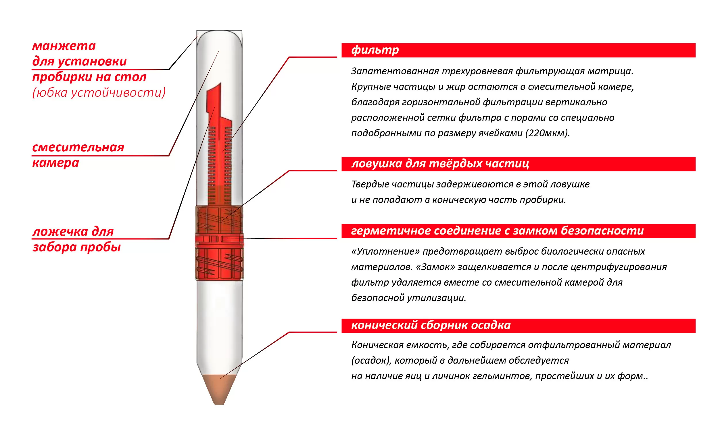 - Пробоподготовка. Внесите требуемое количество образца кала используя ложечку входящую в комплект Mini Parasep. Тщательно перемешайте