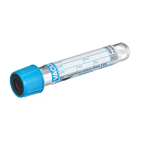 - Пробирка с цитратом Na 3,8% для коагулологии двойная.