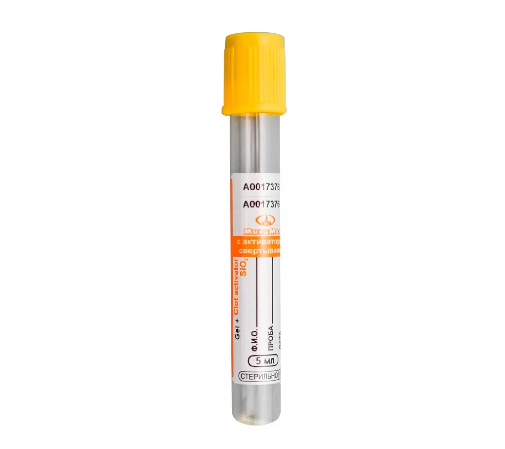 - Стенки пробирок покрыты активатором образования сгустка для ускорения свертывания крови и разделительным гелем.