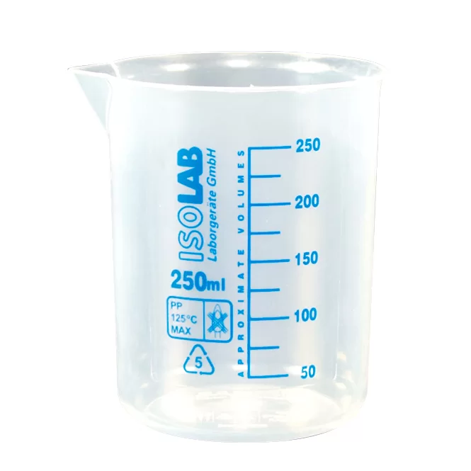 - Мерный стакан ISOLAB изготовлен из сверхпрозрачного полипропилена в соответствии со стандартом ISO 7056.