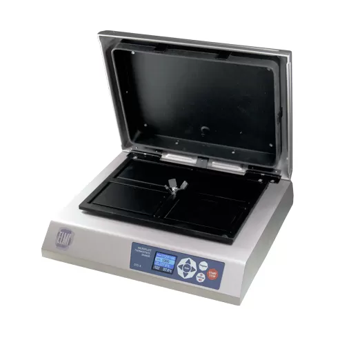 - Термостатируемая вращающаяся герметично закрытая платформа с объемным обогревом на 4 планшеты, в которой создается только ламинарное движение воздуха. что обеспечивает исключительно точный и равномерный нагрев планшет на платформе.
