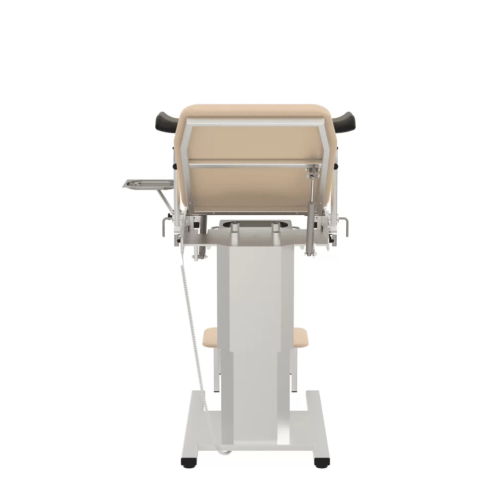 - Кресло регулируется по высоте электроприводом с ручного пульта управления для более удобной работы медицинского персонала во время проведения осмотров и процедур