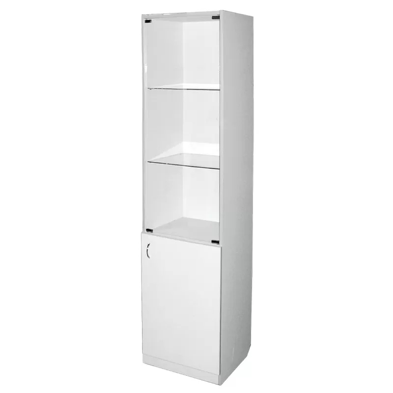 - Верхнее отделение - стеклянная дверь с магнитной защёлкой, и две полки.
