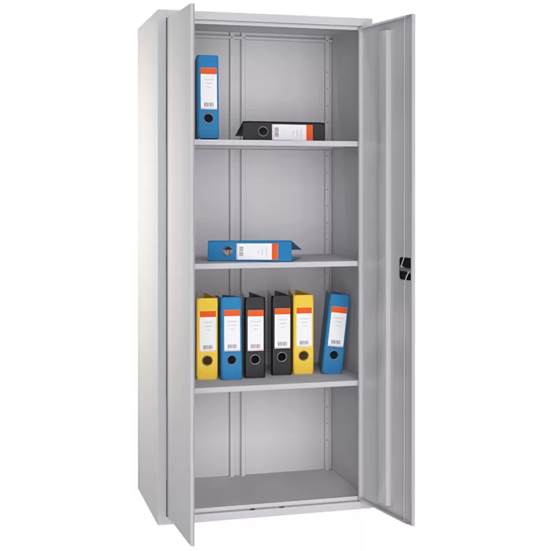 - Такие шкафы из металла не бояться ни влажности, ни перепада температур, менее подвержены износу при интенсивной эксплуатации, а ригельная система запирания в значительной степени защищает содержимое;