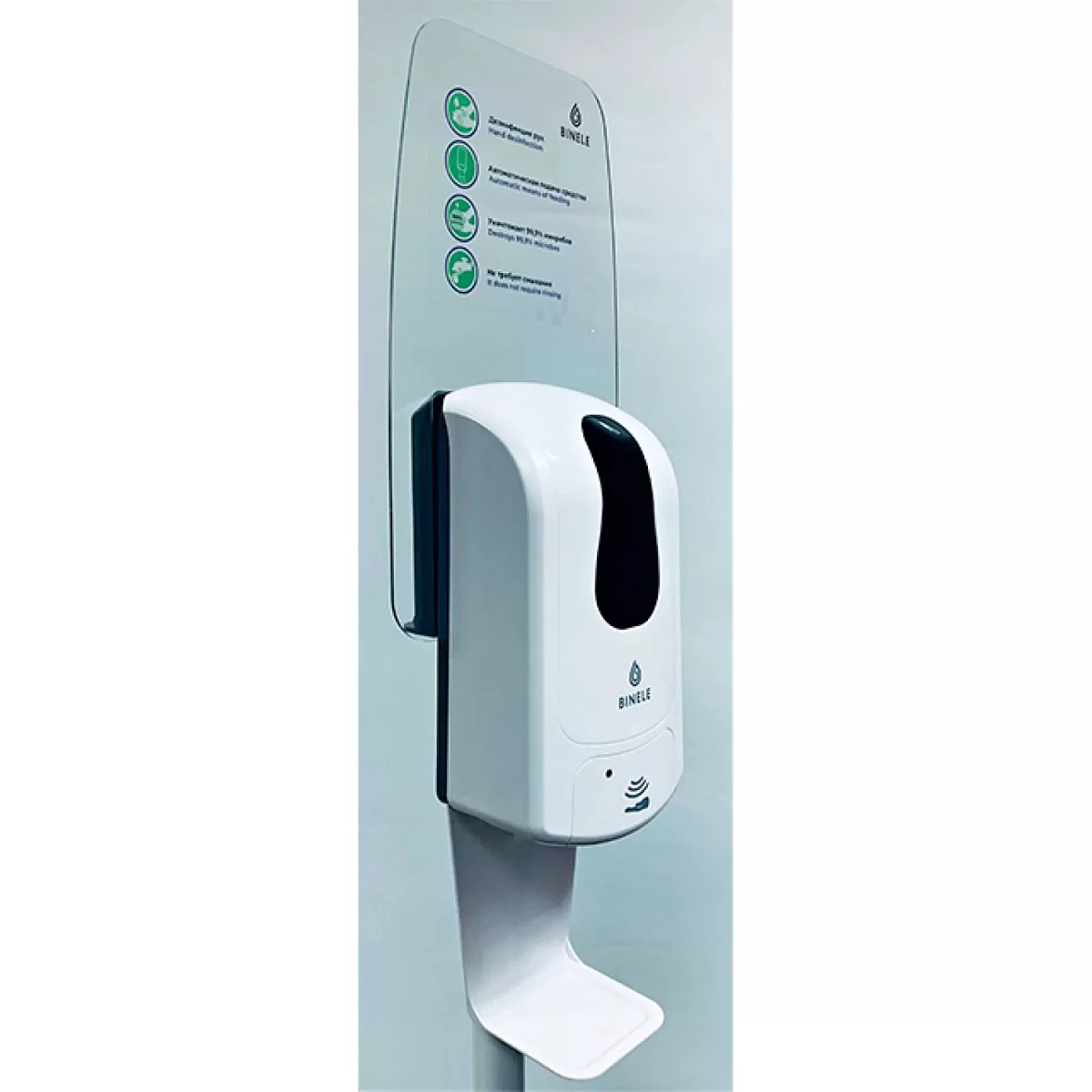 - Мобильная стойка является новым продуктом в сфере дезинфекции рук.