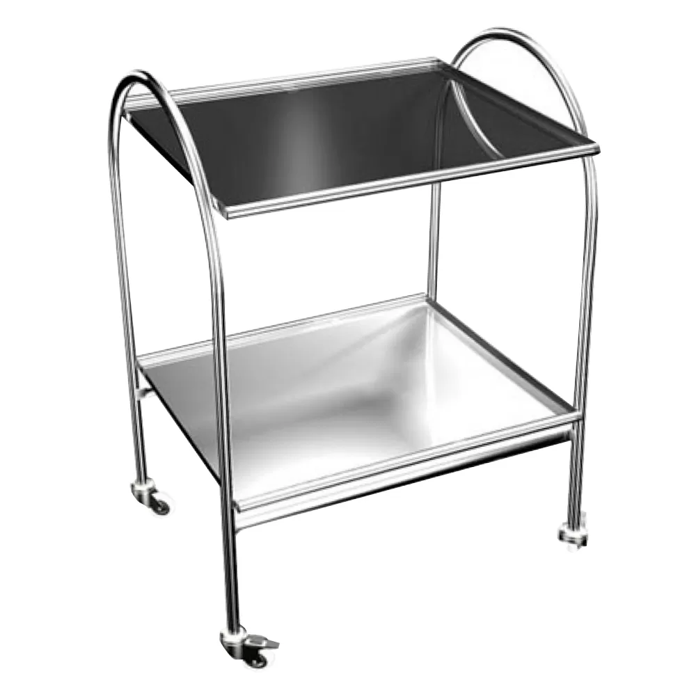 - Столик имеет 2 вынимающиеся полки из листовой нержавеющей стали 0,8 мм с бортиками 16 мм, размеры — 500x345 мм