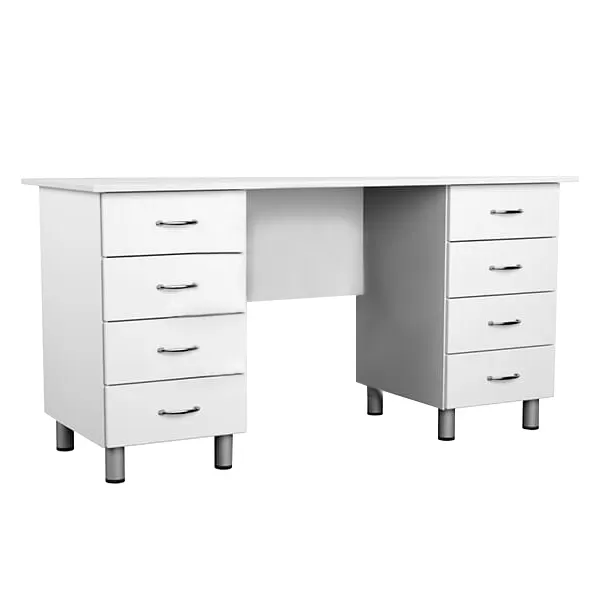 - Стол имеет две тумбы, каждая с 4-мя выдвижными ящиками на роликовых направляющих с нагрузкой до 5 кг.