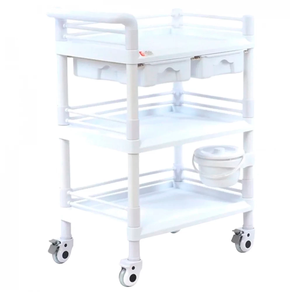- Столик-тележка установлен на поворотные колесные опоры медицинской серии из немаркой резины, 2 колеса с тормозом