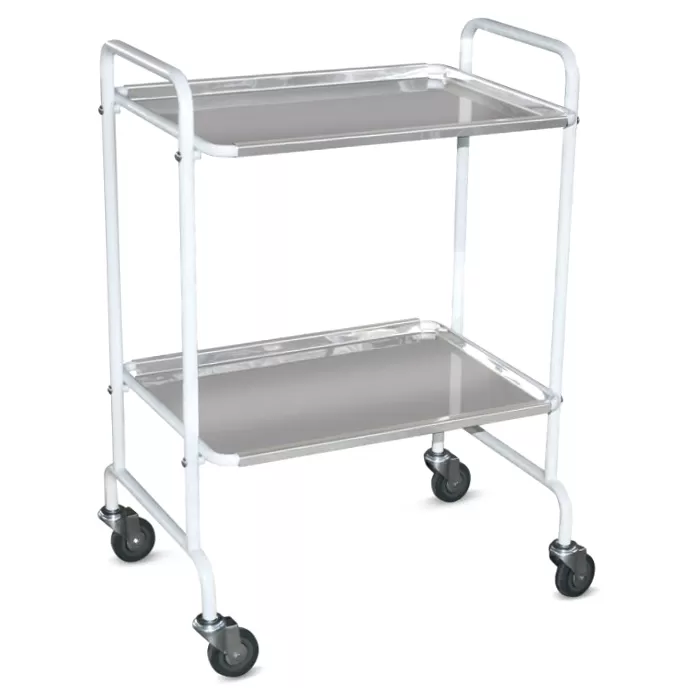 - Столик оснащен одной или двумя ручками и четырьмя самоориентирующимися колесами диаметром 50 мм (мебельными или импортными обрезиненными).