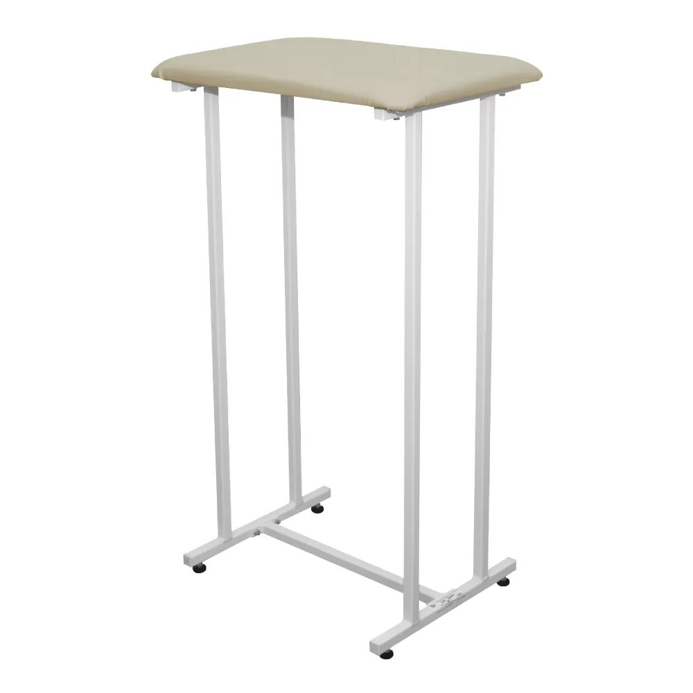 - Материал: сталь (опоры), фанера 9 мм/пенополиуретан 20 мм (столешница), винилискожа (обивка).