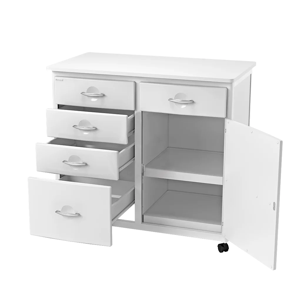 - Материал ящиков, двери и полок: высокопрочный пластик. Материал столешнцы: влагостойкая ЛДСП