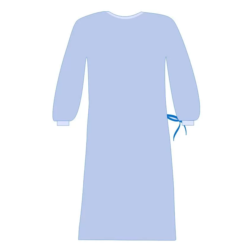 Запах халата расположен со спины и фиксируется посредством трикотажных завязок приваренных к нетканому полотну с помощью ультразвуковой сварки.