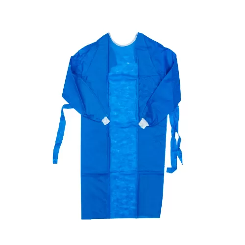 Халат упакован в крепированную бумагу/стерилизационный материал и пакет из многослойной пленки.
